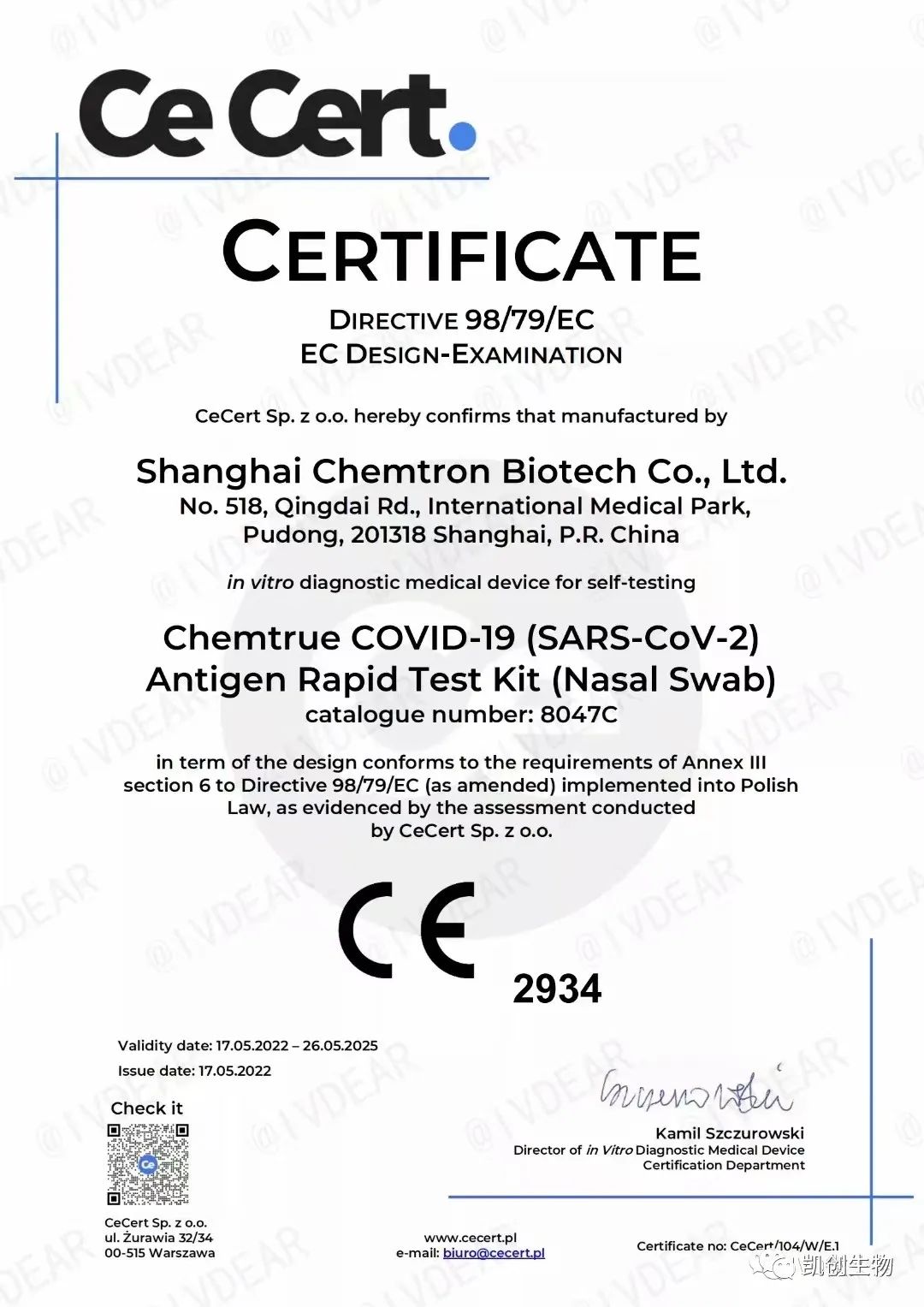 上海凱創(chuàng)生物技術(shù)有限公司研發(fā)的新型冠狀病毒(SARS-CoV-2)快速抗原檢測試劑盒(免疫層析法)自測產(chǎn)品獲得歐盟CE準入資格!這意味著該自測試劑盒可在歐盟國家以及認可歐盟CE認證的國家進行銷售。